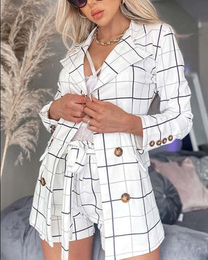 Pink Checked Two-Piece Shorts Jacket Set